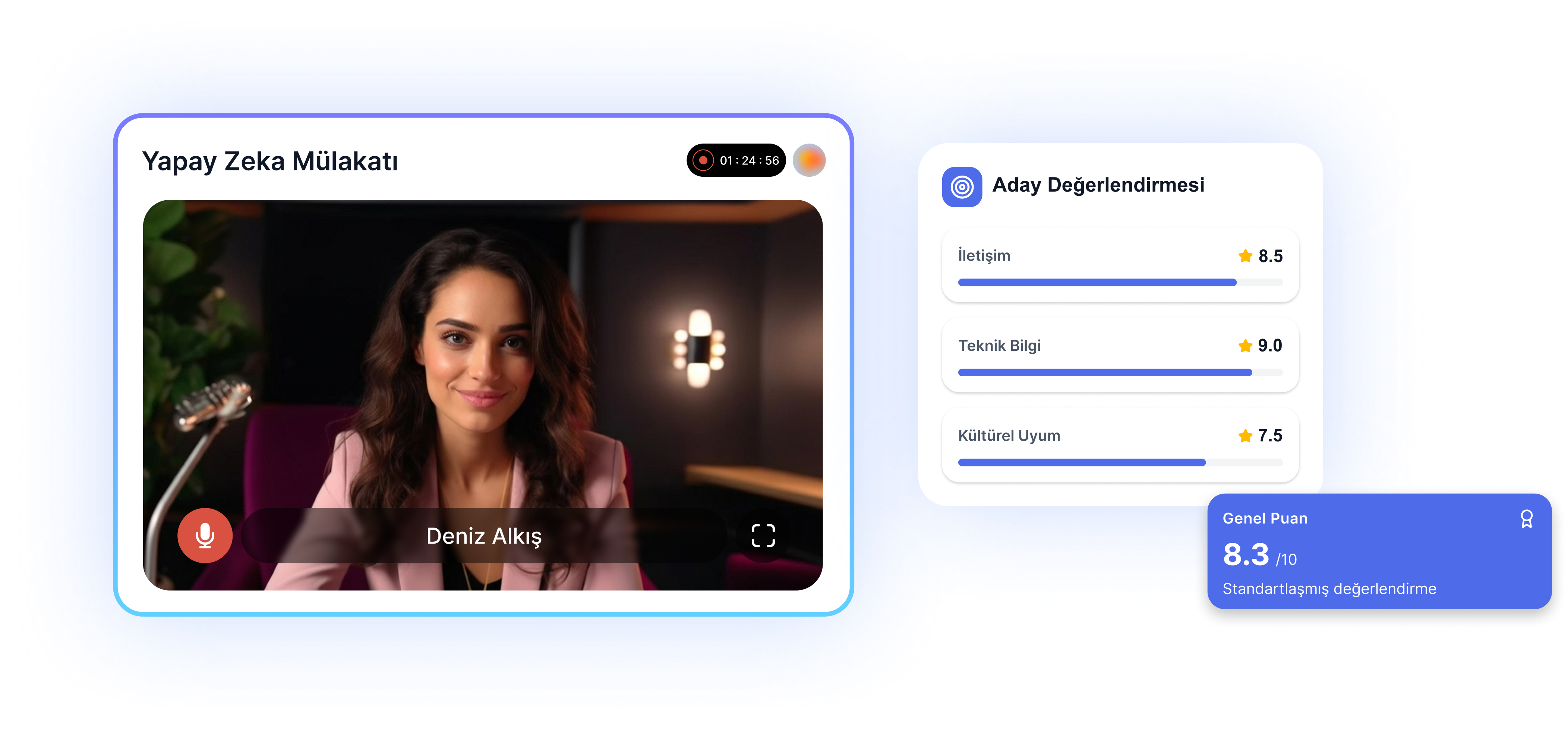 İşe alım kararlarını hızlandırmak için yapılandırılmış mülakatlar yürüten ve tutarlı değerlendirme çıktıları üreten bir yazılımdır.