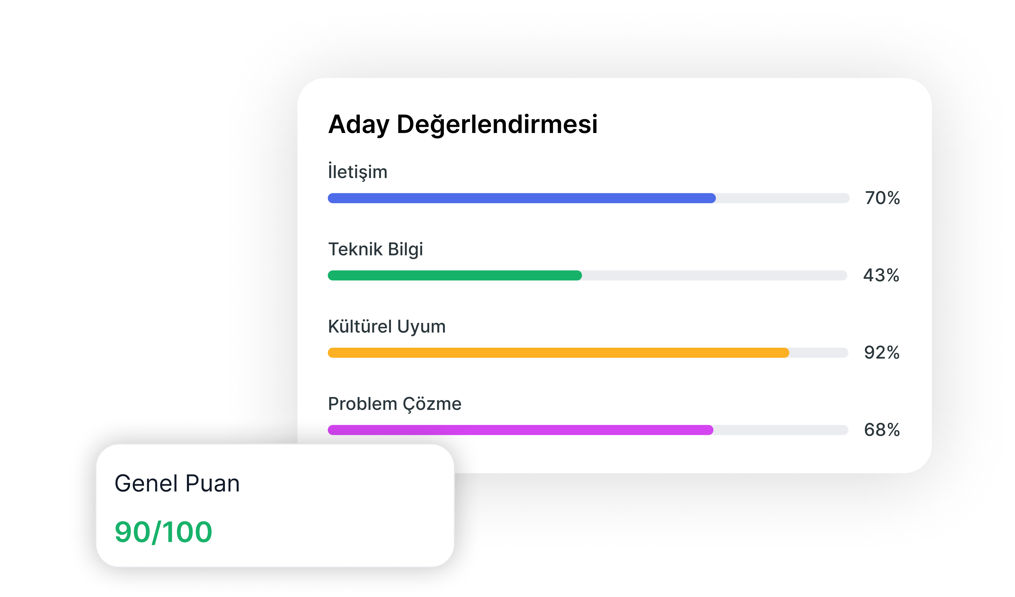 ScaleHire, tutarlı bir yapı ile AI video mülakatlar yürütür ve yanıtları analiz ederek net bir değerlendirme özeti sunar. Şüpheli davranışları işaretleyebilir ve yöneticilerin zamanını boşa harcayan düşük değerli mülakatları azaltır. Sonuç olarak hız, adalet ve karşılaştırılabilirlik için tasarlanmış, karar almaya hazır kısa listeler elde edersiniz.